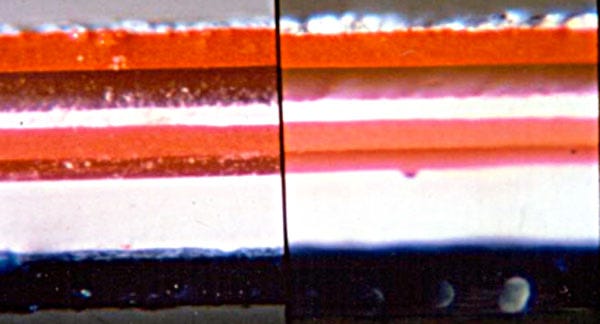 يمكن للمقارنة المجهرية لعينات الطلاء أن تُظهر طبقات الطلاء والبرايمر والطلاءات والخدوش وأضرارًا أخرى قد تطابق قطعتين تطابقًا فريدًا أو توفّر معلومات تعريفية تصنيفية.